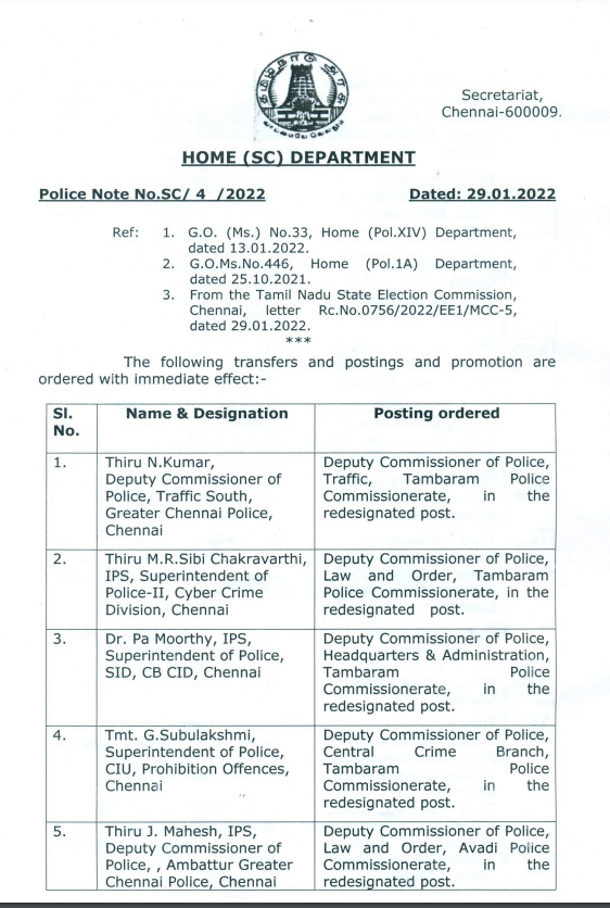 நிர்வாக வசதிக்காகவும் காவல்துறை உயரதிகாரிகளின் விருப்பத்திற்கு இணங்கவும் அவ்வப்போது காவல்துறை உயர் அதிகாரிகள் இடமாற்றம் செய்யப்பட்டு வருகின்றனர் என்பதை பார்த்து வருகிறோம்