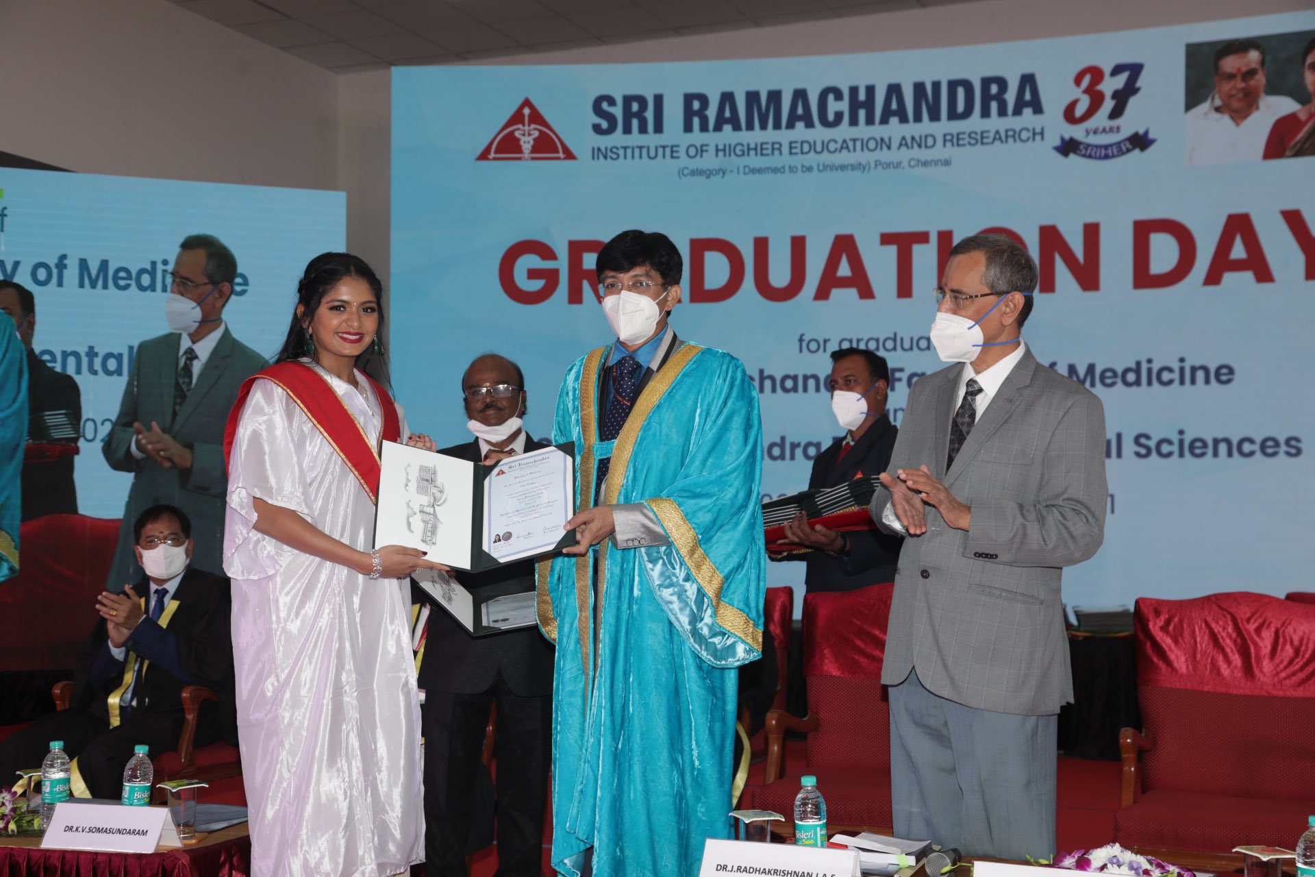 சுகாதாரத்துறை செயலாளர் ராதாகிருஷ்ணன் அவர்கள் அதிதி ஷங்கருக்கு டாக்டர் பட்டத்தை வழங்கினார். இது குறித்த புகைப்படங்களை தனது டுவிட்டர் பக்கத்தில் அதிதி ஷங்கர் பதிவு செய்துள்ள நிலையில் அந்த புகைப்படங்கள் தற்போது வைரலாகி வருகிறது என்பது குறிப்பிடத்தக்கது.