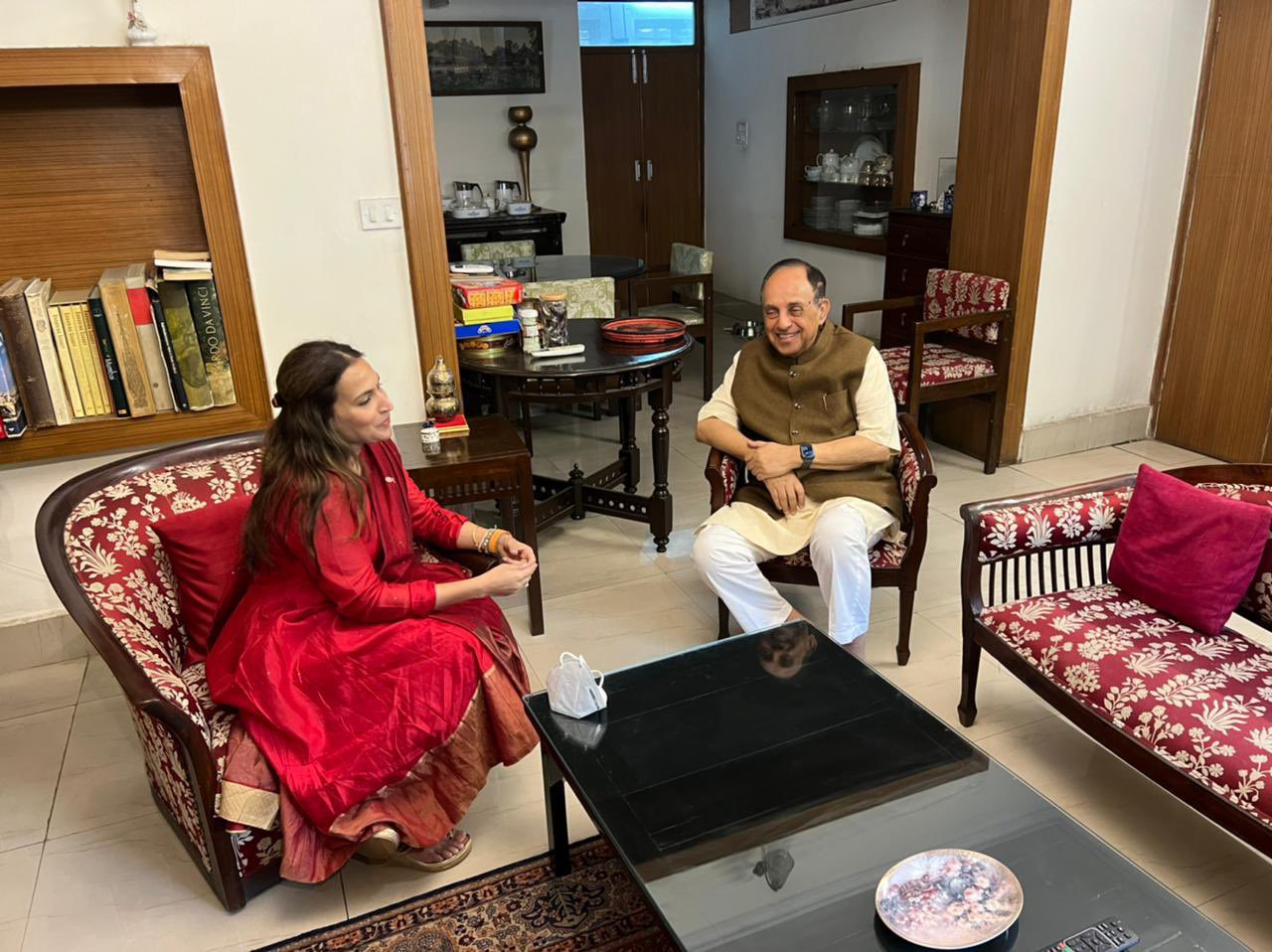 இந்த நிலையில் சூப்பர் ஸ்டார் ரஜினிகாந்த் அவர்களை பாஜக பிரபலம் சுப்பிரமணியன் சுவாமி பல நேரங்களில் கடுமையாக விமர்சனம் செய்துள்ளார் என்றும் ஒரு சில நேரம் அவருக்கு பாராட்டு தெரிவித்துள்ளார் என்பது குறிப்பிடத்தக்கது. இந்த நிலையில் இன்று திடீரென ரஜினியின் மகள் ஐஸ்வர்யா தனுஷ் டெல்லியில் சுப்பிரமணிய சுவாமியை சந்தித்து பேசியுள்ளார்.