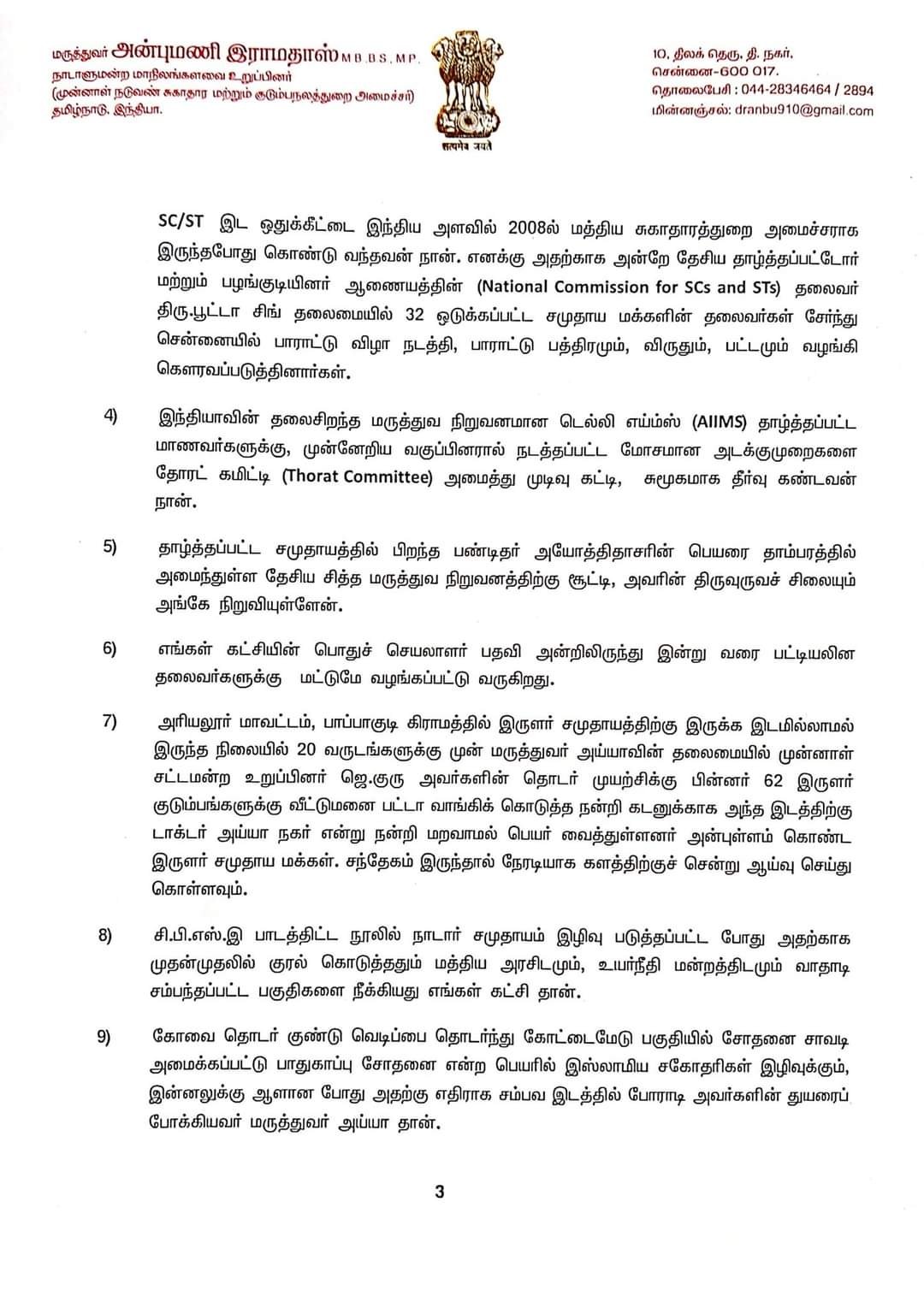 இந்த நிலையில் சூர்யாவுக்கு ஆதரவளிக்கும் வகையில் பாரதிராஜா ஒரு நீண்ட அறிக்கை ஒன்றை வெளியிட்டு இருந்த நிலையில் அந்த அறிக்கைக்கு பதில் அளிக்கும் வகையில் அன்புமணி ராமதாஸ் 4 பக்கத்திற்கு அறிக்கை ஒன்றை வெளியிட்டுள்ளார்.