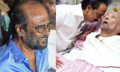 முன்னாள் முதல்வர் கருணாநிதி இறப்பிற்கு டிவிட்டரில் தனது வருத்தத்தினைப் பதிவு செய்துள்ள ரஜினிகாந்த் “என்னுடைய கலைஞர் மறைந்த இந்த நாள் என் வாழ்நாளில் நான் மறக்க முடியாத ஒரு கருப்பு நாள். அவருடைய ஆன்மா சாந்தி...