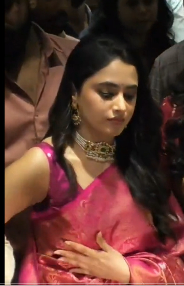அந்த விழாவில் சேலையை தனது கைகளால் அட்ஜெஸ்ட் பண்ணும் வீடியோ காட்சிகளை ரசிகர்கள் எடுத்துப் போட்டு ஜூம் செய்து பார்த்து வருகின்றனர். இப்படியொரு அழகு தேவதையை பார்த்ததே இல்லை என சோஷியல் மீடியாவில் ஜொள்ளு பார்ட்டிகளின் கமெண்ட்டுகள் கரைபுரண்டு ஓடுகிறது.