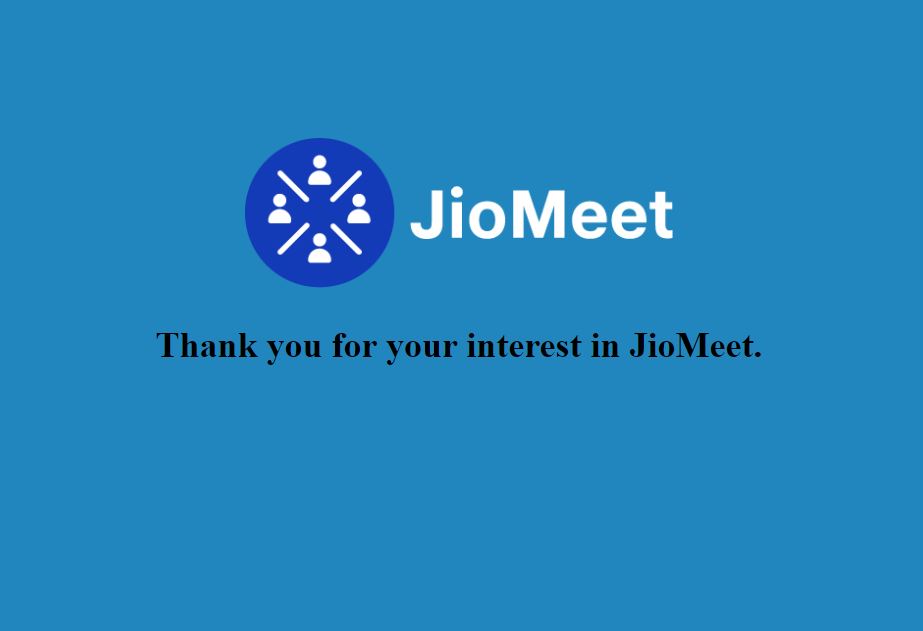 ஜியோமீட் வீடியோ கான்ஃபரன்ஸ் சேவையைத் தொடங்குவதை உறுதி செய்துள்ள ஜியோ, JioMeet.com என்ற இணையதளத்தைத் தொடங்கியுள்ளது. இன்னும் பணிகள் முழுமை அடையாததால் ஜியோ மீட் சேவைக்கு விருப்பம் தெரிவித்தமைக்கு நன்றி என்று மட்டும் குறிப்பிடப்பட்டுள்ளது.