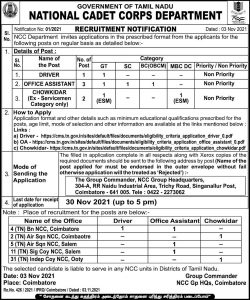 நேஷனல் கேடட் கார்ப்ஸ் எனப்படும் NCC நிறுவனத்தில் காலியாக உள்ள பணியிடங்களை அதிகாரப்பூர்வ அறிவிப்பு வெளியாகியுள்ளது. இதற்குத் தகுதியும் விருப்பமும் உள்ளவர்கள் விண்ணப்பிக்கலாம்.