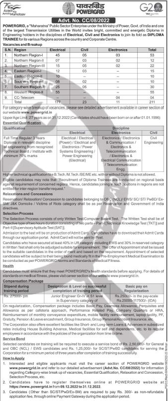 Diploma முடிவர்களுக்கு பவர்கிரிட் ஆணையத்தில் வேலைவாய்ப்பு!