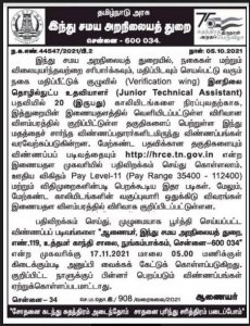 அரசு இந்து சமய அறநிலையத்துறையில் வேலைவாய்ப்பு!