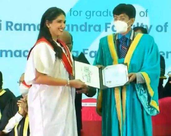 பிரமாண்ட இயக்குனர் ஷங்கரின் மகள் அதிதி ஷங்கர் நேற்று டாக்டர் பட்டம் பெற்றார் என்பதும் இது குறித்த புகைப்படங்கள் அவரது டுவிட்டர் பக்கத்தில் பதிவான நிலையில் இந்த புகைப்படங்கள் வைரலாகும் என்பதும் குறிப்பிடத்தக்கது. டாக்டர் பட்டம் பெற்ற அதிதி ஷங்கருக்கு திரையுலகினர் மற்றும் உற்றார் உறவினர்கள் வாழ்த்துக்களை தெரிவித்து வருகின்றனர் என்பது குறிப்பிடத்தக்கது.