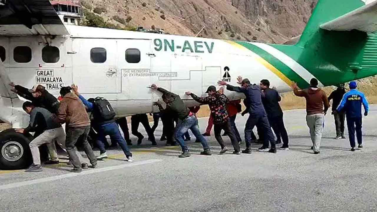 நேபாள நாட்டில் உள்ள கோட்லி என்னும் பகுதியில் அமைந்துள்ள பஜூரா என்ற விமான நிலையத்தில் விமானம் ஒன்று தரையிறங்கிய போது திடீரென அந்த விமானத்தின் டயர் வெடித்தது. டயர் வெடித்ததால் விமானம் ரன்வேயில் இருந்து நகர முடியாமல் அப்படியே நின்றது.
