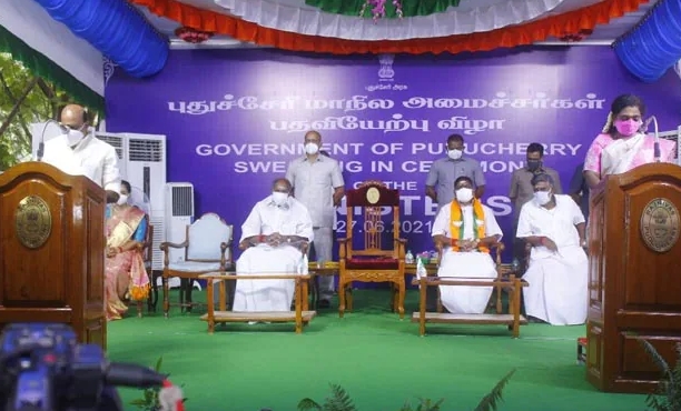 தேர்தல் முடிவுகள் மே 2-ம் தேதி வெளியாகி இருந்தாலும், புதுவை முதல்வராக என்.ஆர்.காங்கிரஸ் கட்சித் தலைவர் ரங்கசாமி மட்டும் பதவியேற்றுக்கொண்டார்.