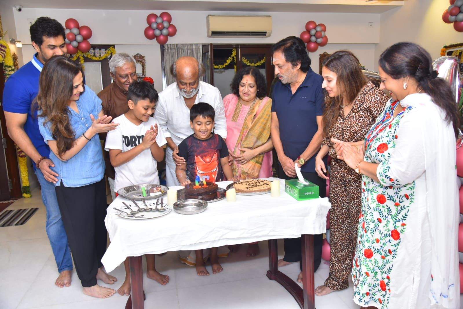 இந்த நிலையில் ரஜினிகாந்த் நேற்று தனது வீட்டில் பிறந்த நாள் கொண்டாடிய புகைப்படங்கள் சற்றுமுன் வெளியாகியுள்ளன. ரஜினிகாந்த், அவருடைய மனைவி லதா ரஜினிகாந்த், மகள்கள் ஐஸ்வர்யா மற்றும் சௌந்தர்யா, பேரன்கள் மற்றும் ரஜினியின் சகோதரர் சத்தியநாராயணா மற்றும் உறவினர்கள் இந்த புகைப்படத்தில் உள்ளனர். இந்த புகைப்படங்கள் தற்போது வைரலாகி வருகிறது என்பது குறிப்பிடத்தக்கது