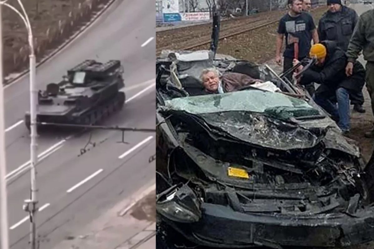 இந்த நிலையில் உக்ரைன் நாட்டை நோக்கி வந்த ரஷ்ய ராணுவ பீரங்கி ஒன்று சாலையில் சென்று கொண்டிருந்த உக்ரைன் முதியவர் ஒருவரின் கார் ஒன்றின் மீது ஏறியது.