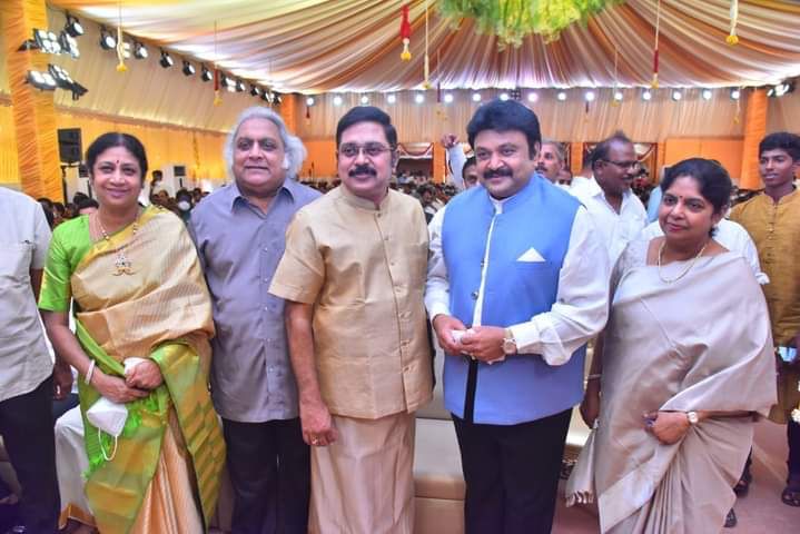 அம்மா மக்கள் முன்னேற்ற கழகத்தின் பொதுச்செயலாளர் டிடிவி தினகரனின் மகள் ஜெய ஹரிணியின் திருமணத்திற்கு சசிகலா மற்றும் சிவாஜி குடும்பத்தினர் வருகை தந்துள்ள புகைப்படம் தற்போது இணையதளங்களில் வைரலாக வருகிறது.