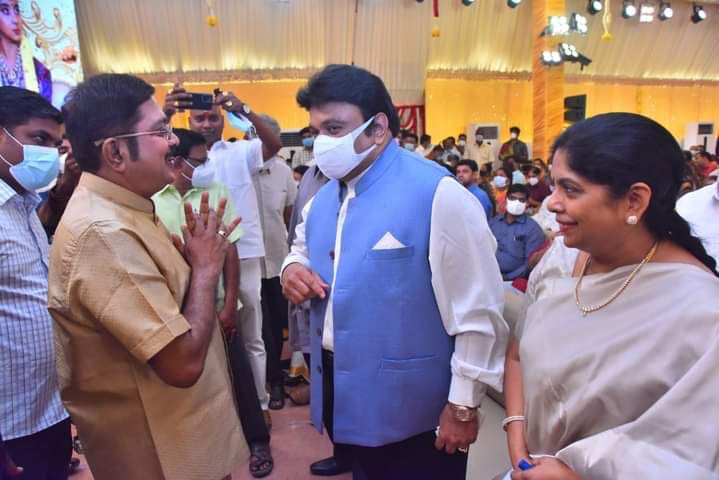 இன்று திருவண்ணாமலையில் டிடிவி தினகரனின் மகள் ஜெயஹரிணிக்கும் தஞ்சாவூரைச் சேர்ந்த முன்னாள் எம்பி துளசி அய்யா வாண்டையாரின் பேரன் ராமநாதன் துளசி வாண்டையாருக்கும் இன்று திருமணம் நடைபெறுகிறது.