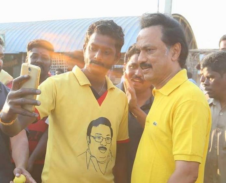 டீ சர்ட்டில் அழகிரி; ஆனால் செல்ஃபி ஸ்டாலினுடன்: வைரலாகும் புகைப்படம்!