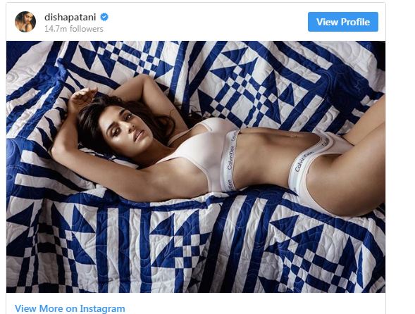 பாலிவுட்டில் வெளியான கிரிக்கெட் வீரர் எம்.எஸ்.தோனி படத்தில் தோனியின் காதலி கதாபாத்திரத்தில் நடித்து பிரபலமடைந்தவர் நடிகைதிஷா படானி. அடுத்ததாக ஜாக்கி சானுடன் குங்ஃபூ யோகா படத்தில் நாயகியாக நடித்து சர்வதேச அளவில் பிரபலமானார். தமிழில் சுந்தர்.சிஇயக்கத்தில் பிரம்மாண்டமாக உருவாக்கப்பட உள்ள சங்கமித்ரா படத்தின் மூலம் கோலிவுட்டில் கால்பதிப்பார் என கூறப்பட்டது. ஆனால்,இதுவரை அந்த படத்தை பற்றிய அப்டேட்ஸ் இல்லை. இந்நிலையில் தற்போது நடிகை திஷா படானி மிக கவர்ச்சியாக ஒரு படுக்கையறையில் எடுத்த ஒரு போட்டோவை வெளியிட்டுள்ளார். அதில்அவர் CalvinKlein உள்ளாடை மட்டும் அணிந்து போஸ் கொடுத்துள்ளார். அந்த பிராண்டின் விளம்பர போட்டோஷூட் இது என்பது இதன்மூலம்தெளிவாகிறது. தனது இன்ஸ்டாகிராமில் இந்த புகைப்படத்தை வெளியிட்டு வைரலாக்கியுள்ளார் திஷா படானி. 14 மில்லியன் ரசிகர்களை இன்ஸ்டாகிராமில்கொண்டுள்ள திஷா படானிக்கு, இந்த புகைப்படம் வெளியிட்ட சில மணி நேரங்களில் 1.4 மில்லியன் லைக்குகள் குவிந்துள்ளன.