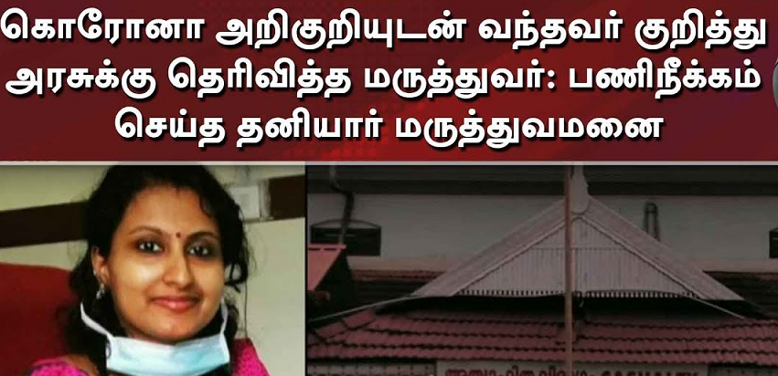கொரோனா அறிகுறியுடன் வந்தவர் குறித்து அரசுக்கு தெரிவித்த தனியார் மருத்துவர் பணிநீக்கம்
