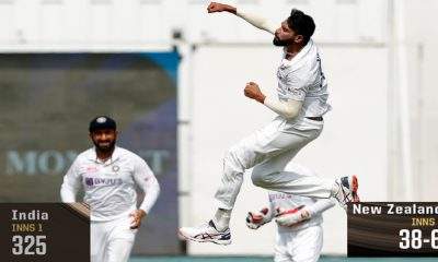 இந்தியா மற்றும் நியூசிலாந்து அணிகளுக்கு இடையே மும்பையில் நடைபெற்று வரும் 2வது கிரிக்கெட் டெஸ்ட் போட்டியில் முதல் இன்னிங்ஸில் நியூசிலாந்து அணி 38 ரன்களுக்கு 6 விக்கெட்டுகளை இழந்து இருப்பது பெரும் பரபரப்பை ஏற்படுத்தி உள்ளது....