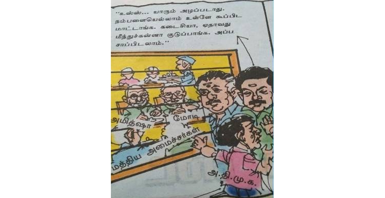 பாஜக தலைவர் அமித்ஷாவின் நெருங்கிய நண்பரும், ஆர்எஸ்எஸ் காரரும், பாஜக ஆதரவாளருமான ஆடிட்டர் குருமூர்த்தி துக்ளக் வார இதழின் ஆசிரியராக பணியாற்றி வருகிறார். இந்த வார இதழில் பாஜகவிடம் அதிமுக பிச்சை எடுப்பது போன்ற கேலிச்சித்திரம்...