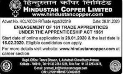 இந்துஸ்தான் காப்பர் நிறுவனத்தில் அளிக்கப்பட உள்ள தொழில்பழகுநர் பயிற்சிக்கான அறிவிப்பு வெளியிடப்பட்டுள்ளது. இதற்கு விண்ணப்பியுங்கள். மொத்த காலியிடங்கள்: 161 துறைவாரியான வேலை மற்றும் காலியிடங்கள் விவரம்: 1. மைன்ஸ் – 60 2. எலக்ட்ரீசியன் –...