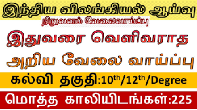 இந்திய விலங்கியல் ஆய்வு நிறுவனத்தில் நிரப்பப்பட உள்ள காலியிடங்கள் 225. இதில் இளநிலை டெக்னிக்கல் உதவியாளர், நூலகம் மற்றும் தகவல் உதவியாளர், முதுநிலை டெக்னிக்கல் உதவியாளர், நூலக கிளார் போன்ற பல்வேறு வேலைக்கான அறிவிப்பு வெளியிடப்பட்டுள்ளது....
