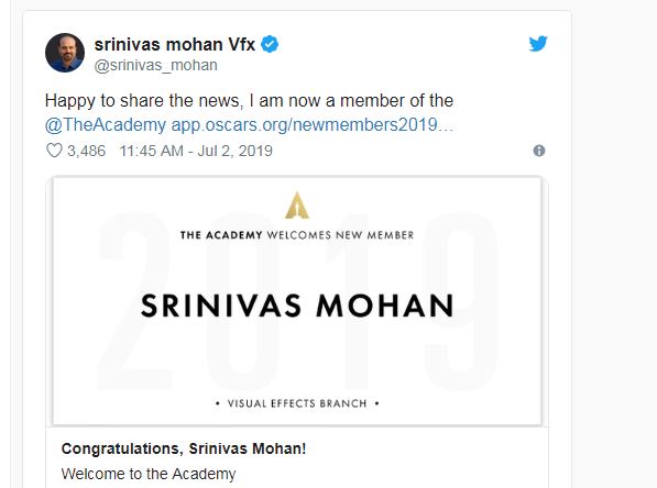 சிவாஜி, எந்திரன், பாகுபலி, 2.0 என இந்தியாவின் பிரம்மாண்ட படங்களுக்கு கம்ப்யூட்டர் கிராபிக்ஸ் எனும் விஷுவல் எபெக்ட்ஸ்களை துல்லியமாக செய்த விஎஃப்எக்ஸ் நிபுணர் ஸ்ரீனிவாஸ் மோகனுக்கு ஆஸ்கர் தனது குழுவில் இணைந்து கொள்ள அழைப்பு விடுத்துள்ளது....