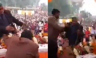 உத்தரபிரதேச மாநில எம்எல்ஏவை விவசாயி ஒருவர் கன்னத்தில் ஓங்கி அடித்தது போல் இருக்கும் வீடியோ இணையதளங்களில் வைரலாகி வரும் நிலையில் அந்த முதியவர் தன்னை அடிக்கவில்லை என்றும் செல்லமாக கன்னத்தில் தட்டினார் என்றும் எம்எல்ஏ சமாளித்துள்ளது...