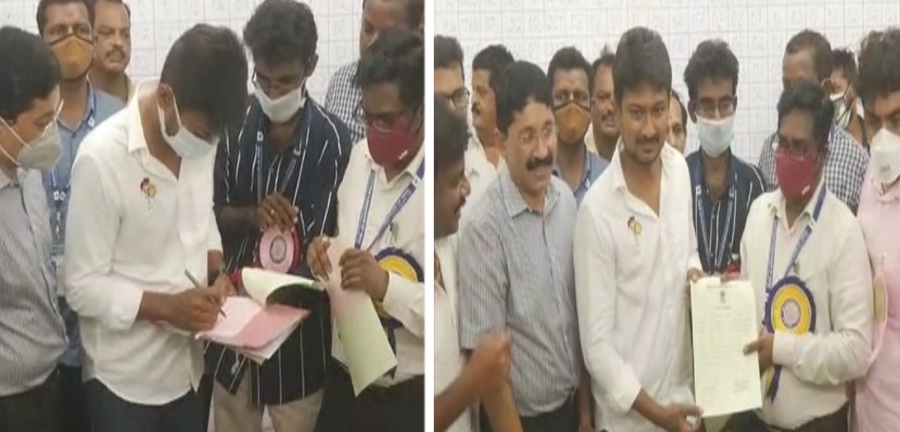 வெற்றி சான்றிதழை கருணாநிதி சமாதியில் சமர்ப்பணம் செய்த உதயநிதி!