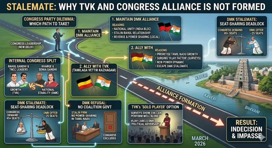 ஆனால், ஒரு கை தட்டினால் மட்டும் ஓசை எழுமா? இருதரப்பிலும் கூட்டணிக்கான முயற்சியை எடுத்திருக்க வேண்டாமா? ஜனநாயகன் விவகாரத்தில் திமுகவினர் கண்டும் காணாமலும் இருந்த போதும் ராகுல் காந்தி தொடங்கி காங்கிரஸின் கடைமட்ட தொண்டன் வரை விஜய்க்கு ஆதரவளித்திருந்தார்கள். அதற்காக காங்கிரஸூக்கு ஒரு நன்றியோ அறிக்கையோ கூட விஜய் வெளியிடவில்லையே. கூட்டணி பேச்சுகளின் போது இந்த சின்னச்சின்ன விவகாரங்கள் கூட பெரிய தாக்கத்தை ஏற்படுத்தும். அதை கூட புரிந்துகொள்ளாத தலைவராகத்தான் விஜய் இருந்தார்.