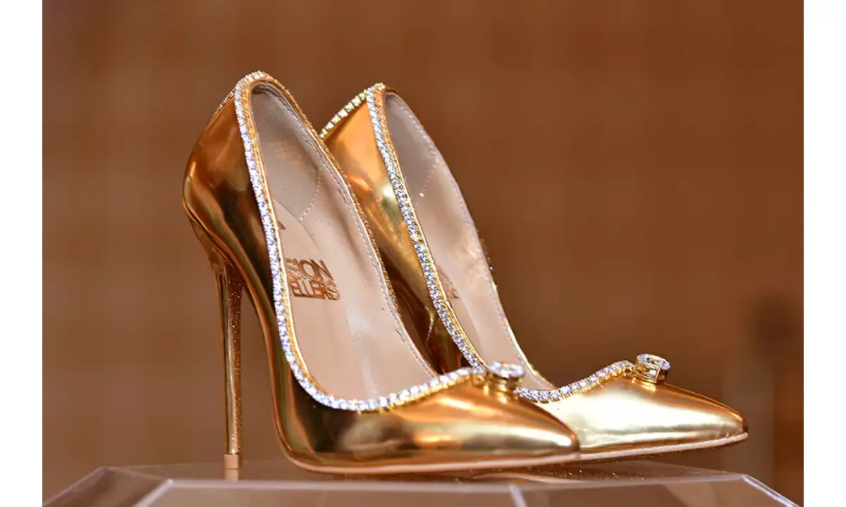 - தங்கம் மற்றும் வைரங்களின் கலவை: காலணியின் குதிகால் முழுக்க தங்கத்தால் ஆனது. மேலும், 30 காரட் வைரக்கற்களால் அழகாக அலங்கரிக்கப்பட்டுள்ளது.